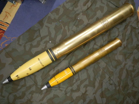 Die 8,8cm Flakpatrone als Größenvergleich daneben