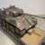 Flachwagen der US Army, beladen mit einem Kampfpanzer M-60 A1. Turm und Kdt-Kuppel drehbar. Seltenes Panzermodell von Bandai im Maßstab 1:25. Der Flachwagen besitzt aufwändige Laser-Beschriftung.